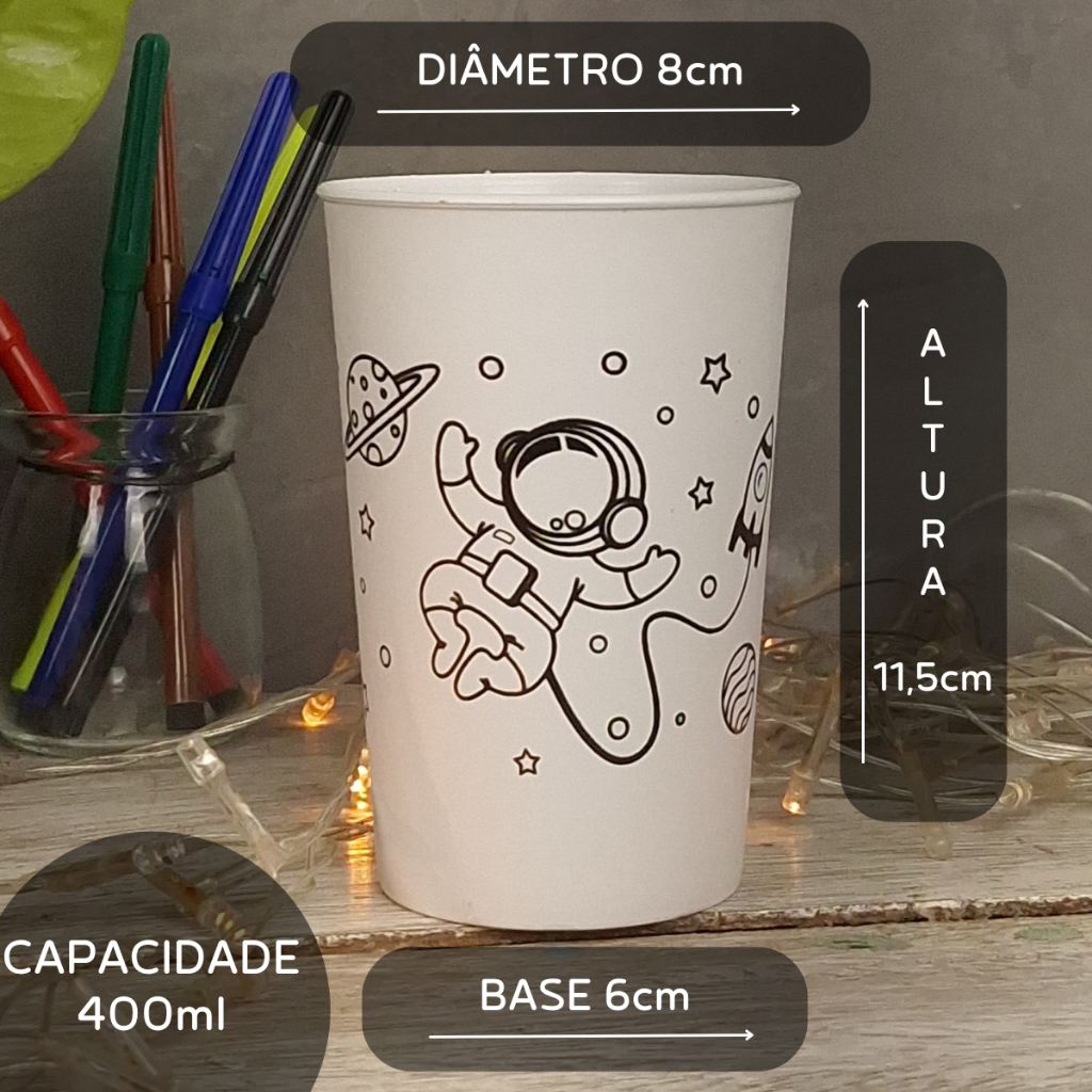 Copo de Colorir Astronauta Foguete Espaço Lembrancinha Aniversário Para Crianças Divertido Educativo