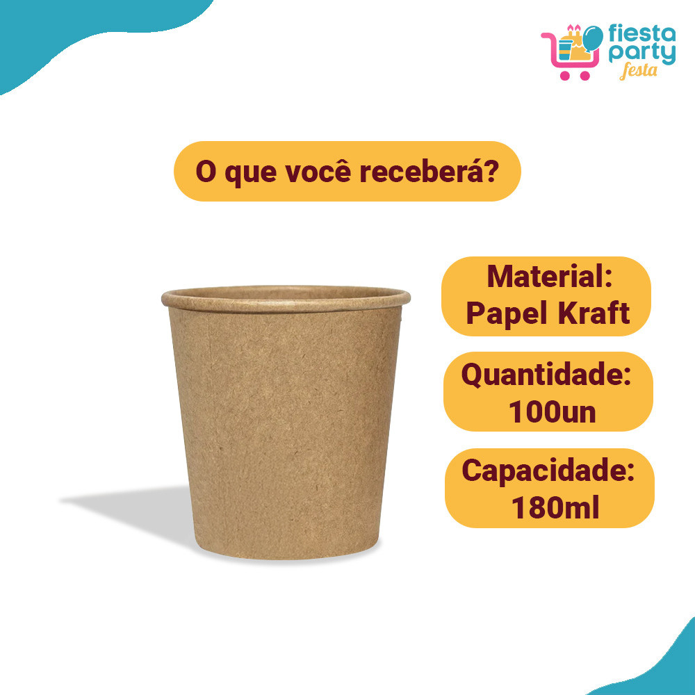 Copo de Papel 180ml Kraft Bello Festas Paper C/100 Un