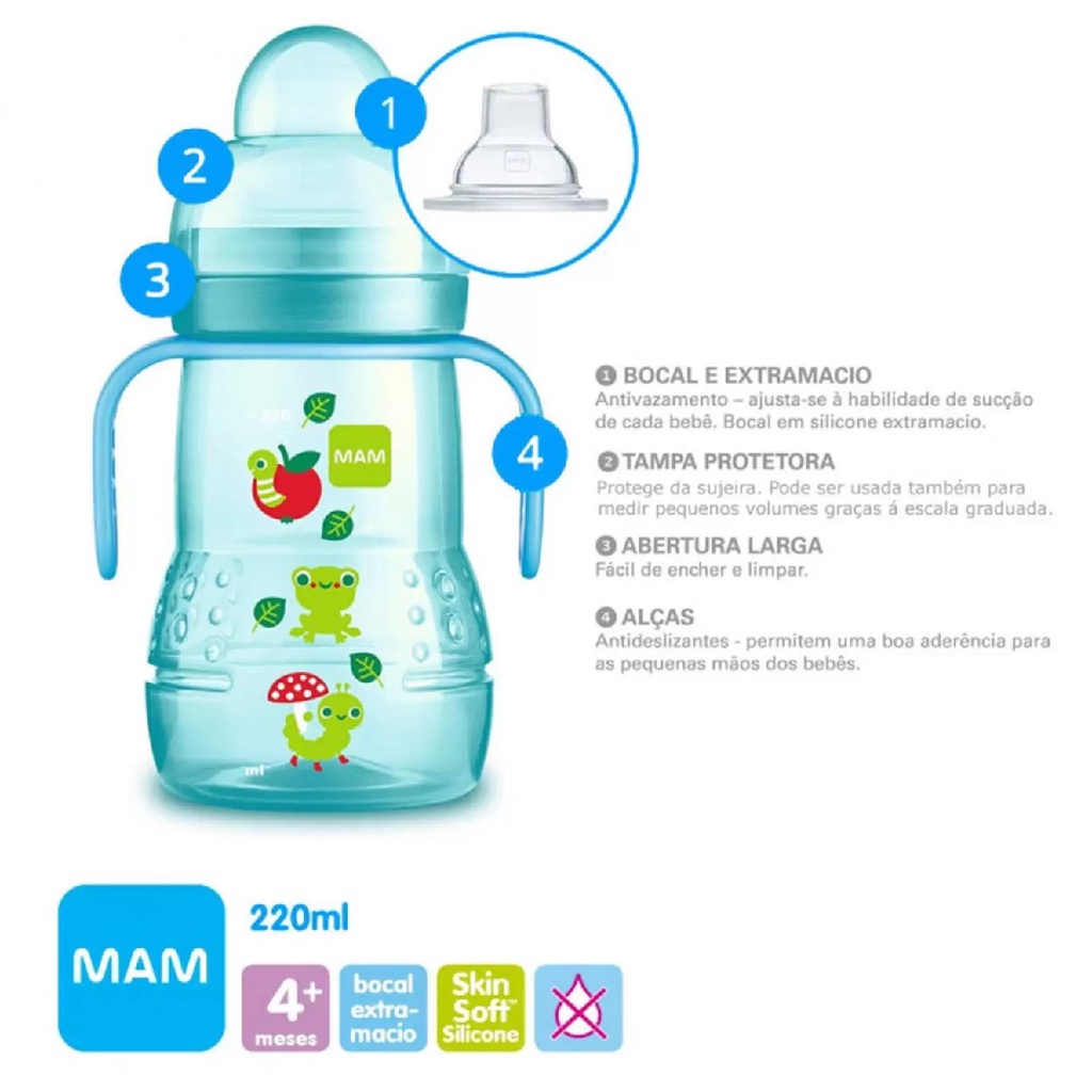 Copo de Transição Infantil Antivazamento 220ml Azul – MAM