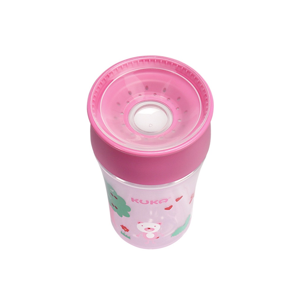 O Copo com design inovador e seguro é ideal para a criança que está aprendendo a ingerir líquidos em copos sem bico. O copo 360° permite que a criança beba em toda a extensão ao redor da borda através de uma sucção suave. Não vaza! O disco de vedação se fecha assim que a criança para de sugar evitando que ela se molhe. O disco de vedação 100% silicone é macio, atóxico, antialérgico, esterilizável, inodoro, não mela e é resistente à fervura. Copo colorido com desenhos divertidos, estimulando a imaginação da criança. Design anatômico, com formato fácil de segurar e tamanho adequado para o rosto da criança. O capuz protetor garante um transporte seguro e higiênico. Os copos e canecas Kuka são desmontáveis para uma limpeza fácil e prática: separe os componentes do produto, higienize conforme instruções de uso e monte novamente.