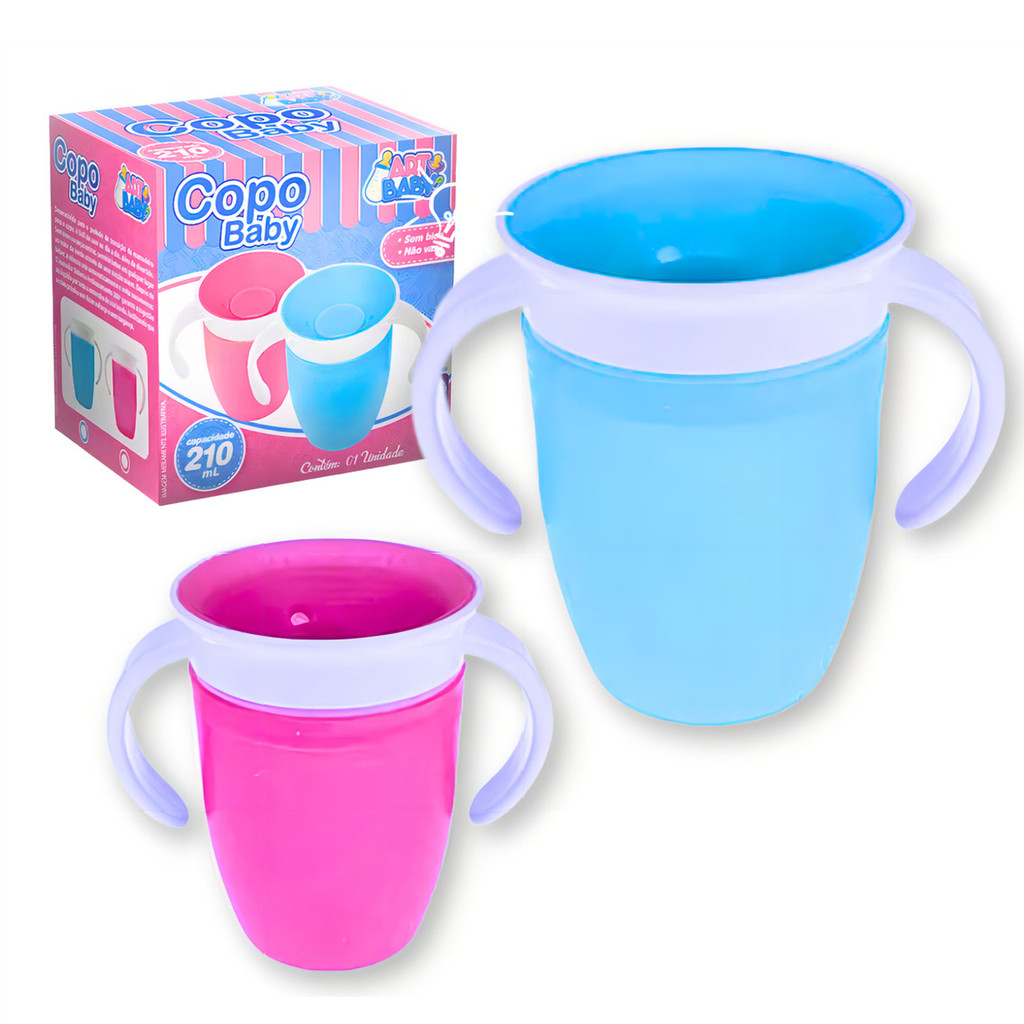 Descricao curta: Copo de Transição 360° com Tampa Antivazamento – Ideal para o Treinamento do Bebê! O Copo de Transição 360° é a escolha perfeita para ajudar seu bebê a sair da mamadeira com mais autonomia e segurança. Projetado para ser usado por crianças a partir de 6 meses, ele possui tampa com sistema antivazamento, que libera o líquido apenas com a sucção, evitando sujeira e acidentes. Sua borda de 360° permite que o bebê beba de qualquer lado, como em um copo comum, facilitando o aprendizado. Além disso, o copo conta com alças anatômicas que proporcionam um manuseio confortável e seguro pelas pequenas mãos.