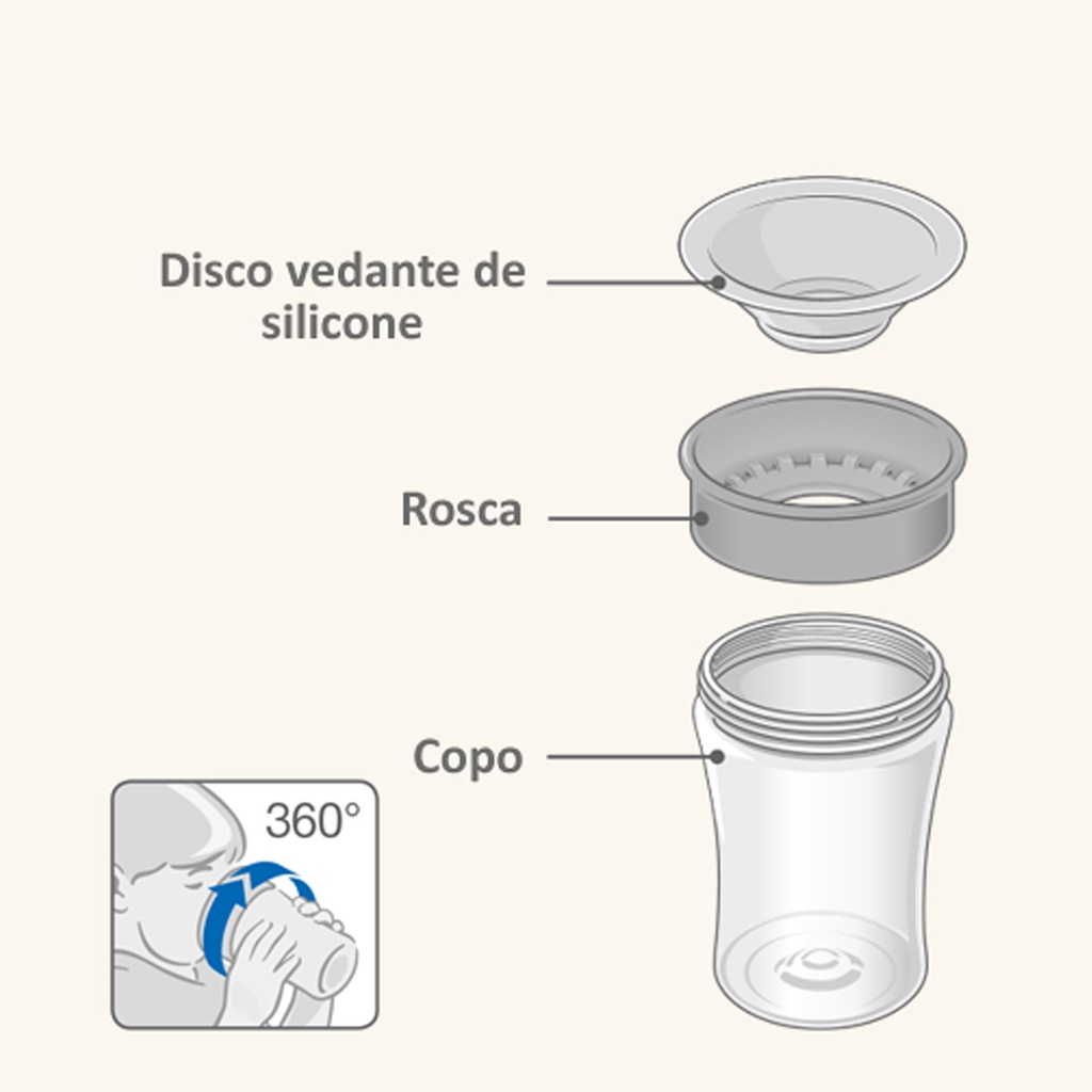 Copo De Treinamento 360° Evolution Magic Cup Azul - Nuk Tempos de muitas descobertas e alegrias estão por começar, e nada melhor do que estar preparado para estar junto neste ciclo de desenvolvimento. O Copo Evolution 360° (230ml) é ideal para a fase de transição do copo com bebedor para o copo tradicional. O design diferenciado permite que o líquido seja ingerido por toda a sua extensão, sem ser derramado no rosto da criança. Oferece conforto e facilidade durante o uso diário, além de garantir a ingestão de líquidos sem esforço, aliado a um eficaz sistema 100% antivazamento por toda sua borda. Incentiva o desenvolvimento das habilidades manuais possibilitando à criança o uso de um copo semelhante ao usado pelos seus pais e com a segurança de não se sujar ou quebrá-lo. O MINISTÉRIO DA SAÚDE ADVERTE: A CRIANÇA QUE MAMA NO PEITO NÃO NECESSITA DE MAMADEIRA, BICO OU CHUPETA. O USO DE MAMADEIRA, BICO OU CHUPETA PREJUDICA O ALEITAMENTO MATERNO. Principais Características: - Idade Recomendada: A Partir de 8 Meses - BPA Free - Fácil de limpar e esterilizar. - Cores vibrantes e estampa divertida - Design diferenciado que permite que o líquido seja ingerido por toda a sua extensão, sem vazar. Especificações Técnicas: - Conteúdo da Embalagem: 1 Copo de Treinamento - Material: Polipropileno e Silicone - Garantia: 30 Dias (Contra Defeito de Fabricação) - Referência do Fabricante: PA7618-1B - Código EAN: 4008600213260 - Marca: Nuk Imagens meramente ilustrativas, as cores e estampas podem variar de acordo com o lote do fabricante.