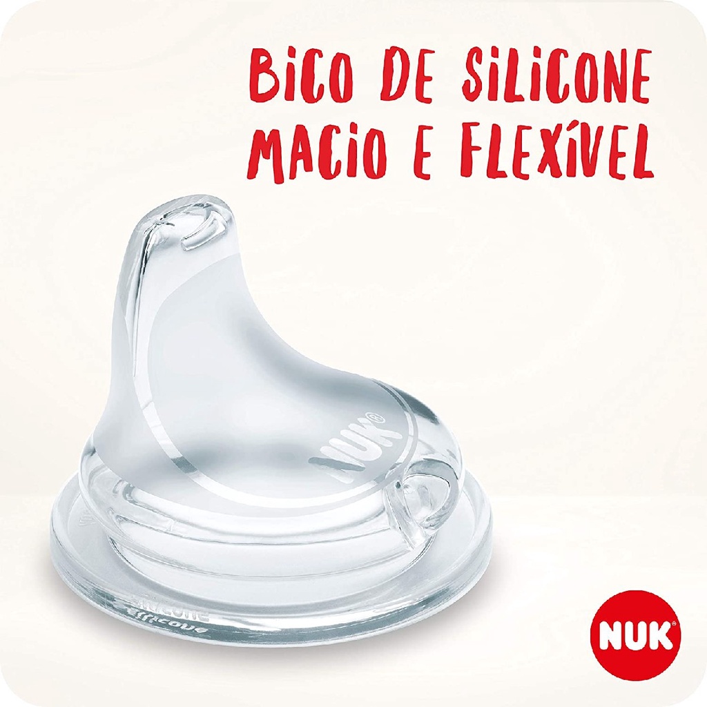 Copo De Treinamento Com Alças 150ml Minnie First Choice NUK O Copo de Treinamento NUK FC Disney 150 ml é ideal para auxiliar os bebês na transição da mamadeira ao copo. Possui alças antiderrapantes anatômicas e design supermoderno e leve que são adequados para as mãos das crianças. O produto é totalmente desmontável, facilitando sua limpeza. Seu bebedor de silicone antivazamento possui sistema de saída de ar NUK Air System Anticólica que abre e fecha instantaneamente a cada sucção. Reduz a ingestão de ar, evita a formação de bolhas e promove uma alimentação contínua: proporcionando maior conforto para a criança. Principais Características: - Idade Recomendada: Acima de 6 meses - Bebedor em silicone supermacio para as gengivas e lábios do bebê, além de estimular o exercício de sucção. É compatível com toda a linha de produtos NUK First Choice. - Válvula NUK Air System Anticólica. Minimiza a formação e ingestão de bolhas de ar durante a alimentação, diminuindo o risco de cólicas. - Não vaza! O sistema antivazamento do copo NUK permite que o líquido seja liberado apenas quando seu filho estiver bebendo. É ideal para a criança começar a beber de forma independente, sem respingos e sem bagunça! - As alças de treinamento antiderrapantes são especiais para mãos pequenas. Seu formato ergonômico ajuda as crianças a segurarem sozinhas e ingerir líquidos de forma mais independente. - Estampa divertida - Fácil sucção - O copo NUK é produzido com material livre de BPA. Especificações Técnicas: - Conteúdo da Embalagem: 1 Tampa Protetora, 1 Rosca, 1 Bico de Silicone, 1 Disco de Vedação, 1 Copo 150ml e 1 Alças Antiderrapantes. - Composição/Material: Polipropileno, Termoplástico Elastômero e silicone. - Dimensões do Produto: 7,2 x 12,0 x 18,5 cm - Garantia: 30 Dias (Contra Defeito de Fabricação Pelo Fabricante) - Código do Fabricante: PA7645-1G - EAN: 4008600129264 - Marca: NUK Imagens meramente ilustrativas. As cores dos produtos podem variar de acordo com o lote do fabricante. "O Ministério da Saúde adverte: A criança que mama no peito não necessita de mamadeira, bico ou chupeta. O uso de mamadeira, bico ou chupeta prejudica o aleitamento materno."