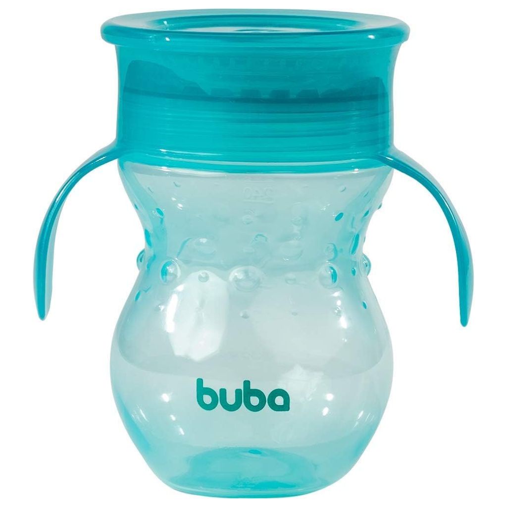 O copo de treinamento 360° com alça da buba pode ser bebido em toda sua borda e possui válvula com tecnologia que permite a vedação automática nas bordas logo após beber. É perfeito para auxiliar no desenvolvimento das crianças e acompanhar a transição da mamadeira para o copo. Possui formato e alças anatômicas, para os pequenos encaixarem perfeitamente a mãozinha. Comporta até 270 ml. É livre de BPA e ftalatos, 100% atóxico e recomendado para bebês maiores de 6 meses. Recomendações: lave antes do primeiro uso com água corrente e sabão neutro. Pode ser fervido, vai à lava-louças (somente na prateleira superior), ao micro-ondas e ao freezer. CARACTERÍSTICAS TÉCNICAS Conteúdo da Embalagem: 01 Copo 360° De Transição Buba. Dimensões Aproximadas do Produto: ?13cm x 12cm x 9cm (Altura x Largura x Comprimento/Profundidade) Dimensões Aproximadas da Embalagem: 23cm x 15cm x 8cm (Altura x Largura x Comprimento/Profundidade) Material/Composição: Polietileno, Polipropileno e Silicone. Idade Mínima Recomendada: A partir de 6 meses. Marca: Buba Outras informações: As cores podem variar entre as imagens mostradas acima e o produto. Imagens meramente ilustrativas. Aviso: As informações e imagens divulgadas são de total responsabilidade do fabricante/fornecedor. APROVADO PELO INMETRO