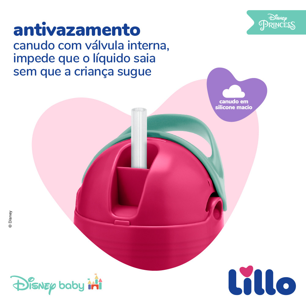 Copo de Treinamento Infantil Canudo Disney 300ml Rosa Lillo