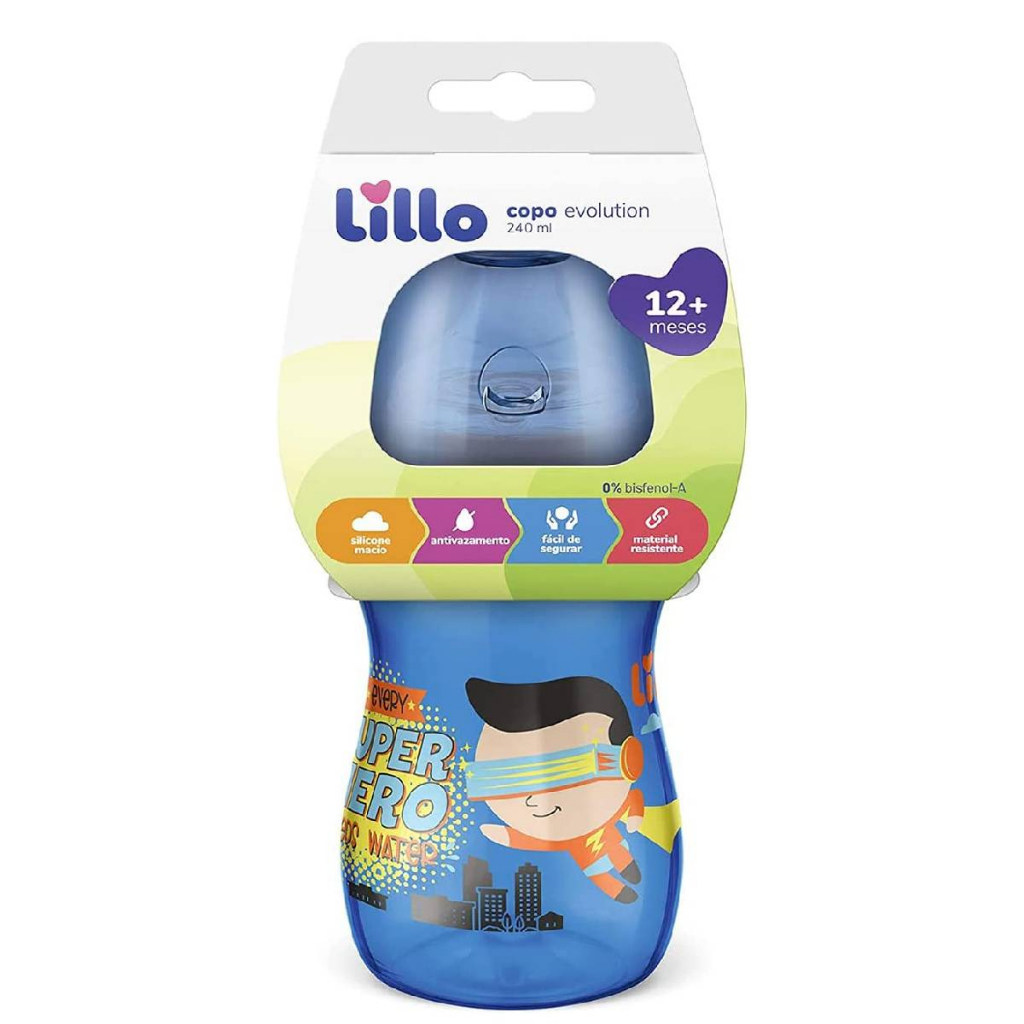 Copo de Treinamento Evolution Bebedor 240ML Azul – Lillo O Copo de Aprendizado Evolution 240ml auxilia os bebês na transição da mamadeira ao copo. O produto é totalmente desmontável, possuí gargalo com abertura larga que facilita a limpeza e o preparo dos alimentos. Mais confortável válvula de saída de ar, diminui a formação e a ingestão de bolhas de ar durante a alimentação. Antivazamento sistema impede que o líquido saia sem que a criança sugue, evitando bagunça Formato frasco acinturado que ajuda na pega das mãozinhas dos pequenos Troca fácil todos os componentes podem ser trocados entre os copos da linha Evolution. Principais Características: - Idade Recomendada: Acima de 12 meses - Frasco em material resistente que oferece segurança contra quebra. - Todos os componentes podem ser trocados entre os copos da linha Evolution - Formato do frasco acinturado ajuda na pegada das mãozinhas dos pequenos. - Tampa com fechamento eficaz e mantém o bebedor protegido durante os passeios. - Antivazamento sistema impede que o líquido saia sem que a criança sugue, evitando bagunça. - Bico em silicone válvula de saída de ar, diminui a formação e a ingestão de bolhas de ar durante a alimentação. - Disco em silicone garante a função antivazamento - Livre de BPA Especificações Técnicas: - Conteúdo Da Embalagem: 01 Tampa, 01 Rosca, 01 Disco em Silicone e 01 Copo 240ml - Composição/Material: Polipropileno,Termoplástico Elastômero e silicone. - Garantia: 30 Dias (Contra defeito de fabricação pelo fabricante) - Referência do Fabricante: 629021 - EAN: 7896033233743 - Marca: Lillo Imagens meramente ilustrativas, cores e estampas podem variar de acordo com o lote do fabricante.