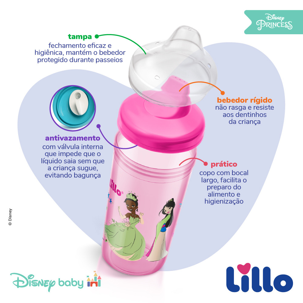 Copo de Treinamento Infantil Max Disney Princesas 320ml Rosa - Lillo O Copo de Treinamento Max da Lillo foi pensado para tornar a transição dos bebês da mamadeira para o copo mais fácil e prática. Com capacidade de até 320ml, seu design ergonômico se ajusta perfeitamente às mãozinhas pequenas, proporcionando uma pegada mais firme e confortável, ajudando a criança a ganhar autoconfiança enquanto aprende a beber sozinha. O seu bico rígido não rasga e é super resistente aos dentinhos das crianças. Também conta com uma válvula interna antivazamento que evita que o líquido saia sem que a criança sugue evitando a bagunça. E, para garantir ainda mais praticidade, o copo vem com uma tampa protetora higiênica que mantém o bico protegido durante o transporte. Além disso, ele é totalmente desmontável e seu bocal largo torna a limpeza bem mais simples e rápida. O fechamento rosqueado é seguro e prático, e o material leve e resistente é livre de BPA, trazendo mais tranquilidade para os pais. Esse copo é a escolha ideal para acompanhar o bebê em sua rotina, oferecendo conforto e segurança em cada gole. Com o Copo Disney Princesas da Lillo o momento de beber será ainda mais divertido e encantador para a sua pequena! Principais Características: - Idade Recomendada: A partir de 12 meses. - Modelo: Max Disney Princesas - Capacidade: 320ml - Livre de BPA - Bico Rígido Super Resistente - Válvula Antivazamentos - Design com Formato Ergonômico - Possui Tampa Protetora Higiênica - Totalmente Desmontável - Bocal Largo - Fácil Higienização - Fechamento Rosqueado - Material Leve e Resistente Especificações Técnicas: - Conteúdo da Embalagem: 1 Copo de Treinamento Max Disney Princesas 320ml Lillo - Composição/Material: Polipropileno - Garantia: 30 Dias (Contra Defeito de Fabricação Pelo Fabricante) - Referência do Fabricante: 308031 - EAN: 7896033234153 - Marca: Lillo Imagens meramente ilustrativas, as cores e estampas podem variar de acordo com o lote do fabricante.