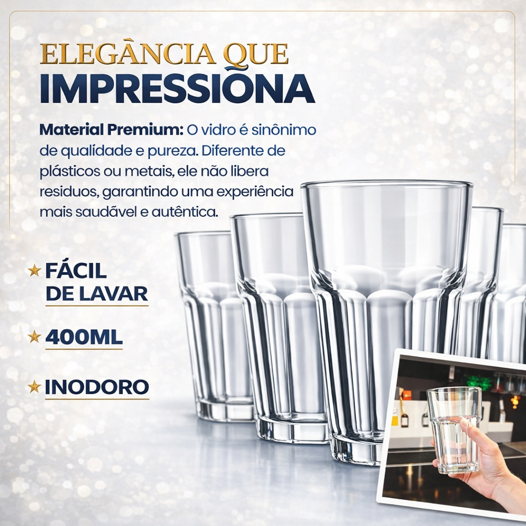 Copo de Vidro 400ml Super Resistente Copo Alto Premium