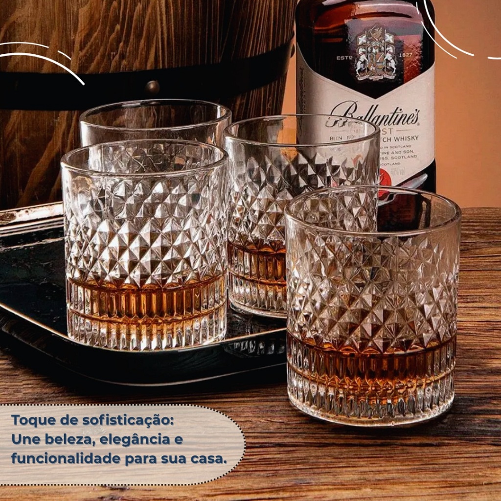Copo De Whisky Cristal Ecológico Bebidas Drinks Baixos 310ml Esplanada 6 Unidades