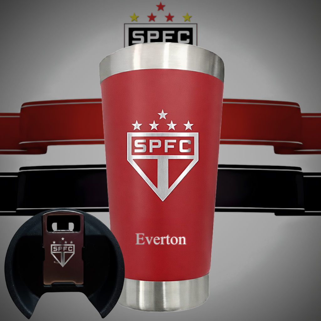 Copo Do São Paulo Térmico Tricolor Personalizado C/tampa E Abridor 473ml Variação 2