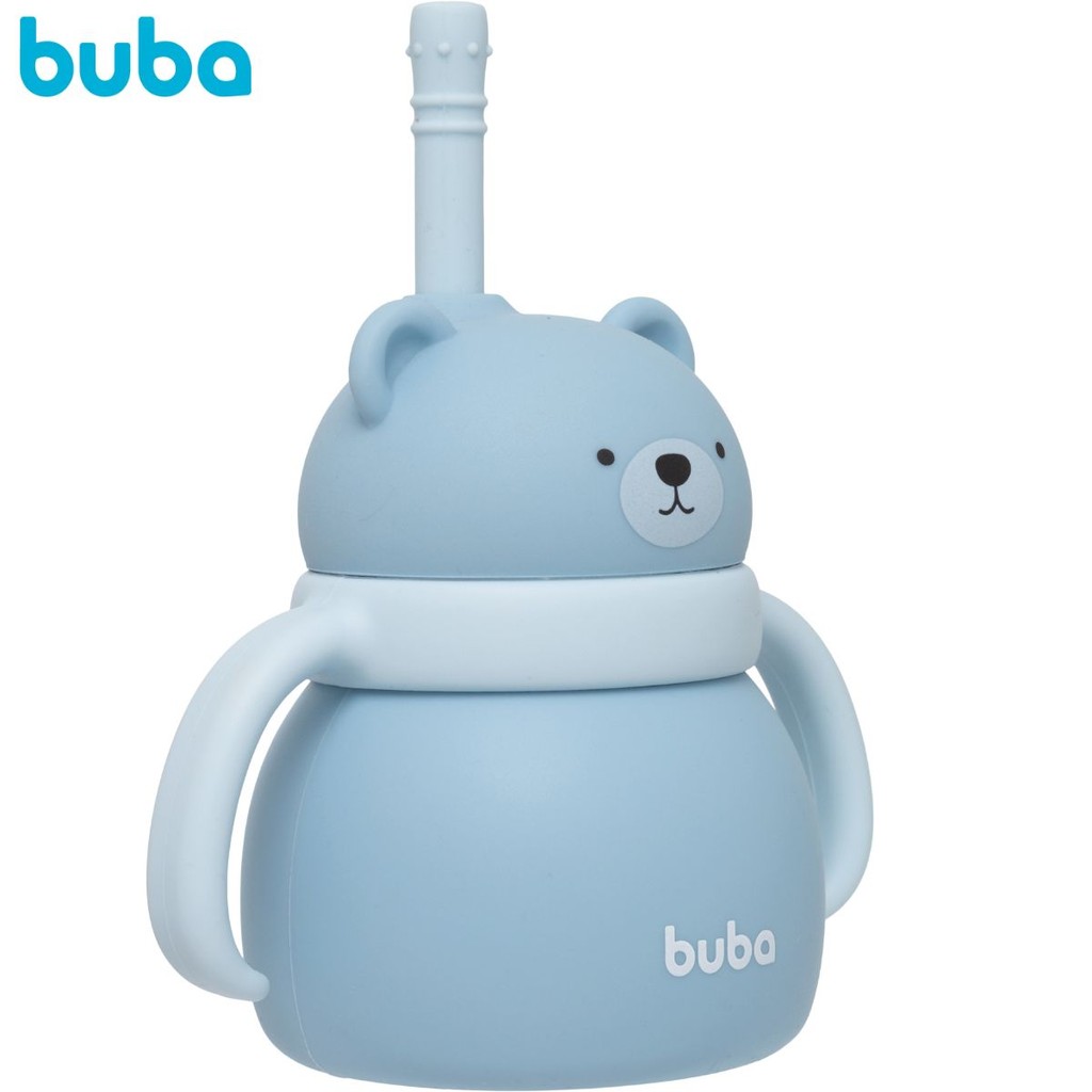Copo em Silicone Com Canudo Ursinho Azul 19689 - Buba