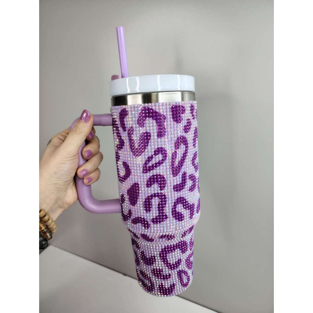 Copo Garrafa de água 1200Ml térmico strass brilho inox Quecher VK-Q004