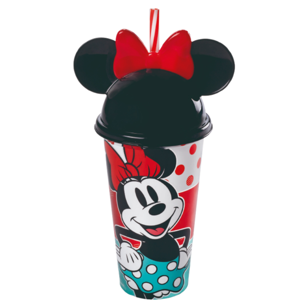 Copo Infantil com Canudo 500 mL com Orelhinhas Minnie e Mickey