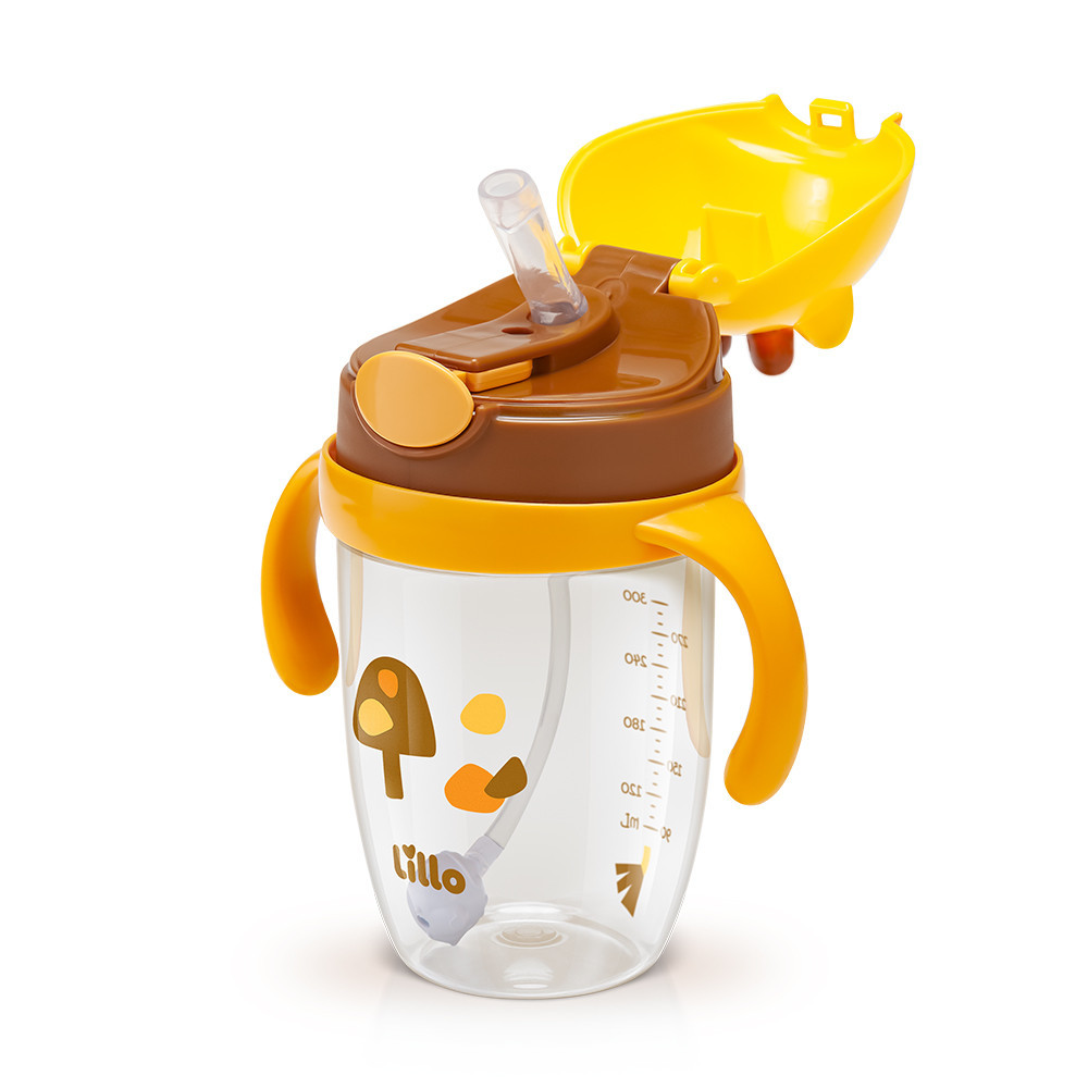 Copo Infantil Tritan com Alça e Canudo Girafa 300ml - Lillo