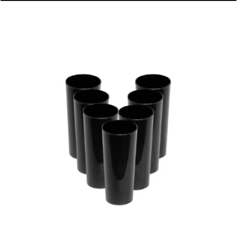 long drink preto 350 ml Medidas : Altura : 15,5 cm Boca : 6,1 cm Espessura: 2 mm Material : Ps cristal Peso : 52 gramas