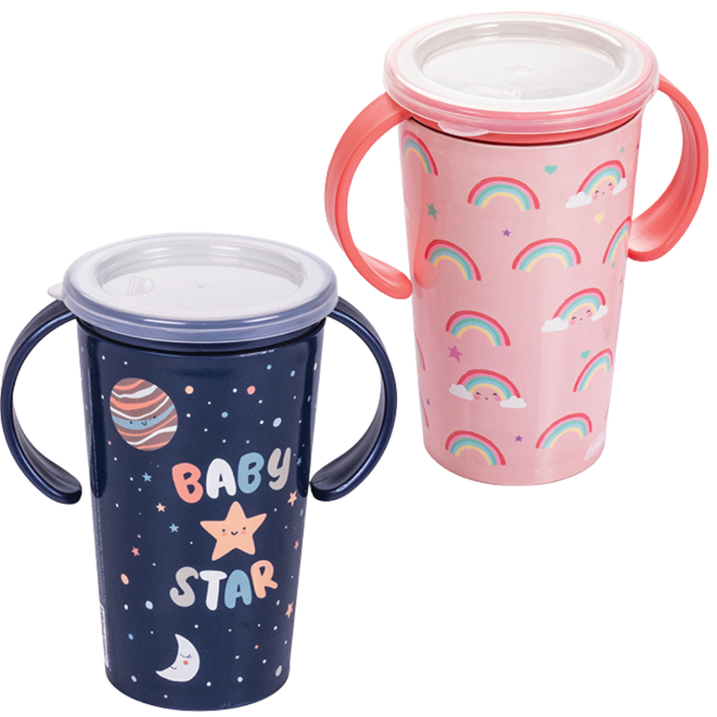 * Copo Magic 360° Com Alça e Válvula Antivazamento 280ml Plasútil * Pode virar à vontade: não derrama mesmo! O Copo Magic 360° da Plasútil é o aliado perfeito para acompanhar os pequenos na transição para o copinho. Com alças laterais que ajudam na pegada firme e borda que permite beber de qualquer lado, ele incentiva a autonomia com diversão. Sua tampa mantém tudo limpinho, e o sistema inteligente só libera o líquido com a sucção, evitando desperdícios e surpresas pelo caminho. Tudo isso com estampas variadas, coloridas e cheias de charme, que tornam cada gole uma experiência encantadora! Recomendações: Este produto pode ser usado no micro-ondas, no freezer (até -10°C) e também na lava-louças. Lave bem antes do primeiro uso com água corrente e sabão neutro. Guardar em local seco, longe do alcance do sol. Examinar regularmente o estado de todas as peças do produto. Se apresentar dano ou sinal de desgaste, descarte o produto imediatamente. Realizar o descarte adequado dos sacos plásticos, fitas adesivas, fechos, etc. Este produto poderá apresentar variação de cores e detalhes. Imagens meramente ilustrativas. Guarde esta embalagem para eventuais consultas. Este produto não é um brinquedo, utilizar sempre sob supervisão de um adulto. * Garantia * 90 dias contra defeito de fabricação.