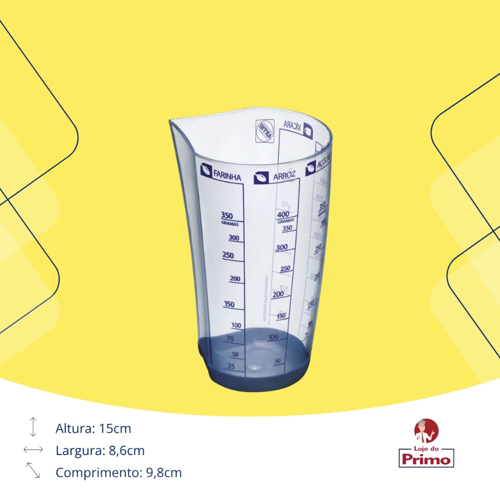 Copo Medidor com Base Emborrachada 500 ml - 5 Medidas Diferentes - Arthi Descrição: Facilite suas receitas com o Copo Medidor da Arthi, projetado para medir líquidos e ingredientes secos com precisão. Com capacidade de 500 ml e cinco medidas diferentes indicadas no corpo do copo, ele é ideal para quem gosta de cozinhar com exatidão. A base emborrachada oferece maior estabilidade e segurança durante o uso, evitando deslizamentos. Características: - Capacidade: 500 ml, com marcações de 5 medidas diferentes para precisão em cada receita. - Material: Plástico resistente e transparente, facilitando a visualização das medidas. - Design: Prático e moderno, com escala de medidas bem visível para líquidos e ingredientes secos. - Base: Emborrachada para evitar deslizamentos e proporcionar maior estabilidade durante o uso. - Uso Versátil: Pode ser usado para medir líquidos, farinhas, açúcares, arroz e outros ingredientes. Benefícios: - Permite medições precisas, garantindo o sucesso das suas receitas. - A base emborrachada oferece maior segurança, evitando que o copo escorregue durante o uso. - O design transparente com marcações visíveis facilita o uso, ideal tanto para cozinheiros iniciantes quanto para os mais experientes. - Fácil de limpar e armazenar, sendo uma ferramenta essencial em qualquer cozinha. Com o Copo Medidor da Arthi, medir ingredientes para suas receitas ficou ainda mais prático e preciso. A base emborrachada proporciona segurança e conforto, enquanto as marcações claras garantem que cada ingrediente seja medido com exatidão. Ideal para quem valoriza praticidade e precisão no dia a dia da cozinha!