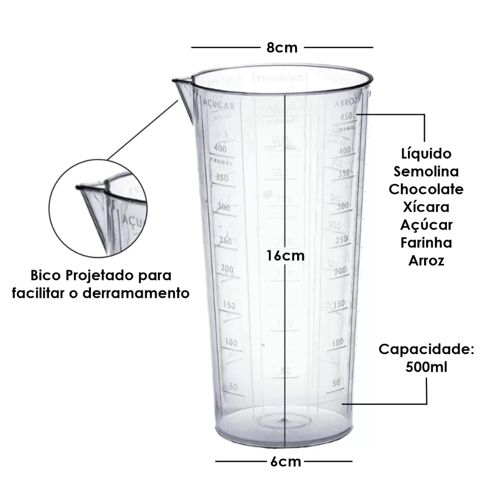 | Copo Medidor Graduado de Cozinha 500ml em Relevo com Bico Multiuso ... este produto | R$ 11,98 | 40% | 5.0/5 | — |
