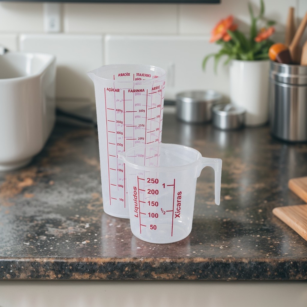 Copo Medidor + Jarra Medidora Para Cozinha Medir Farinha Leite Água Açúcar Com Medidas Diversas