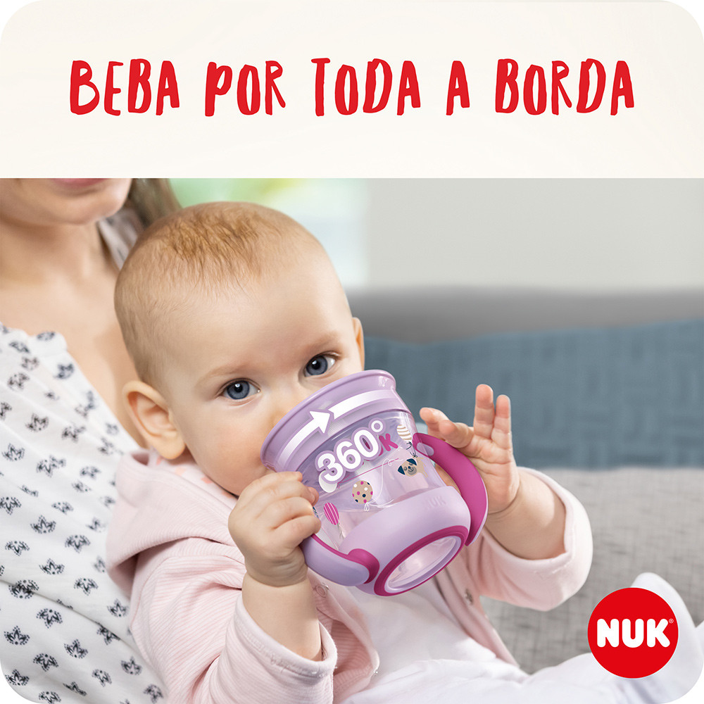 Copo Mini Magic 360 com Alça Evolution 160ml – Nuk O Copo Mini Magic Cup 360° NUK Evolution 160ml foi especialmente desenvolvido para ensinar a criança a beber de forma independente e incentivar um dos momentos mais importantes no desenvolvimento do bebê, além de contribuir com suas habilidades manuais possibilitando à criança o uso de um copo semelhante ao usado pelos seus pais e com a segurança de não se sujar ou quebrá-lo. Suas alças ergonômicas são ideais para as pequenas mãozinhas. Seu sistema 360º garante a ingestão de líquido sem esforço, aliado a uma eficaz estrutura antivazamento por toda a sua borda. O copo é intercambiável e permite que o bebedor, alça e rosca possam ser utilizados em todos os frascos da linha NUK Evolution. É recomendado para crianças a partir de 6 meses de idade. Produto totalmente Livre de Bisfenol-A. O MINISTÉRIO DA SAÚDE ADVERTE: A CRIANÇA QUE MAMA NO PEITO NÃO NECESSITA DE MAMADEIRA, BICO OU CHUPETA. O USO DE MAMADEIRA, BICO OU CHUPETA PREJUDICA O ALEITAMENTO MATERNO. Principais Características: - Idade Recomendada: A partir de 6 meses - Design que permite que o líquido seja ingerido por toda extensão; - Material super-resistente - Seguro, não vaza - Capacidade: 160ml - Possui Alças - Livre de BPA Especificações Técnicas - Conteúdo da Embalagem: 1 Copo Mini Magic 360 com Alça - Composição/Material: Polipropileno(PP) - Dimensões do Produto (AxLxP): 9,0 x 9,0 x13,0 cm - Garantia: 30 dias (Contra Defeito de Fabricação Pelo Fabricante) - Peso: 0,110 kg - Referência do Fabricante: PA7639-1N - EAN: 7896098813973 - Marca: Nuk Imagens meramente ilustrativas, as cores e estampas podem variar de acordo com o lote do fabricante