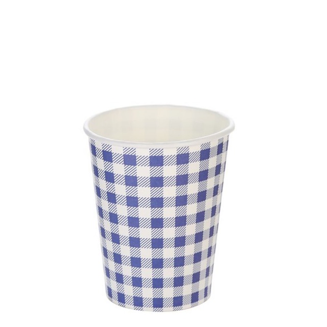Copo papel Xadrez Junina Azul Biodegradável - 10 un - 270 ml - Silver Festas - Rizzo