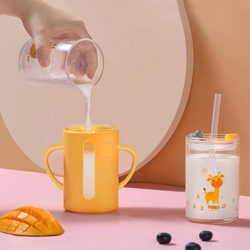 Copo Para Crianças Com Leite Graduado , De Vidro De Palha anti-Gotas Água Potável Bebês Bonito E Resistente Ao Calor