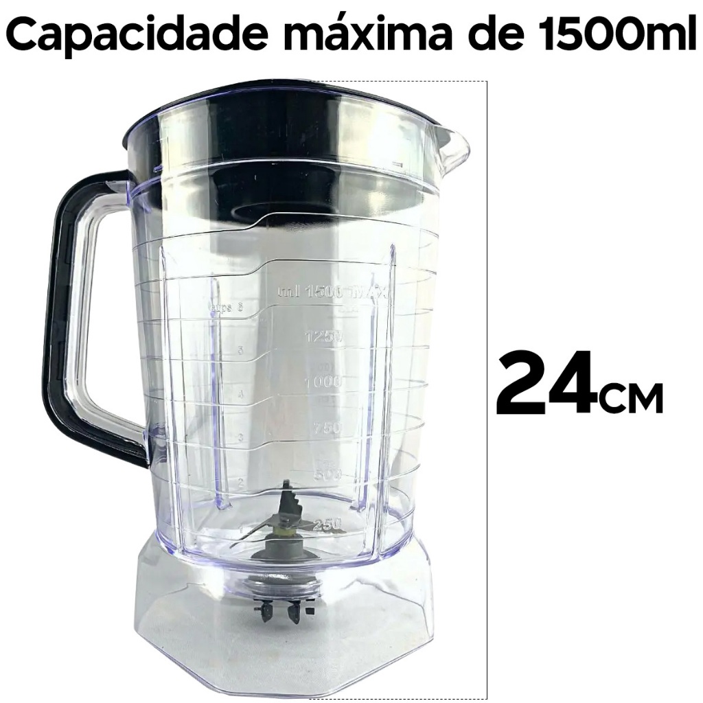 Descrição Copo Para Liquidificador Oster Power 1400 Full OLIQ610 Material: Acrílico Lâminas Internas em Aço Inox; Capacidade: 1.500 ml. Tampa Preta Sangel Tamanho: 24cm Itens Inclusos: 1 Copo com lâmina; 1 Tampa. OBS: COMERCIALIZAMOS APENAS O COPO. * Todos nossos produtos têm boa procedência e qualidade * Tudo a Pronta Entrega * Envio em 24 horas úteis * Temos uma equipe especializada para lhe atender da melhor forma. * Nossos produtos são embalados com cuidado para que não haja danos com sua mercadoria. * Compra Segura e Garantida! Gostou? Esse produto pode ser seu! Aguardamos sua compra! Você Merece Beleza e Praticidade na sua Cozinha.