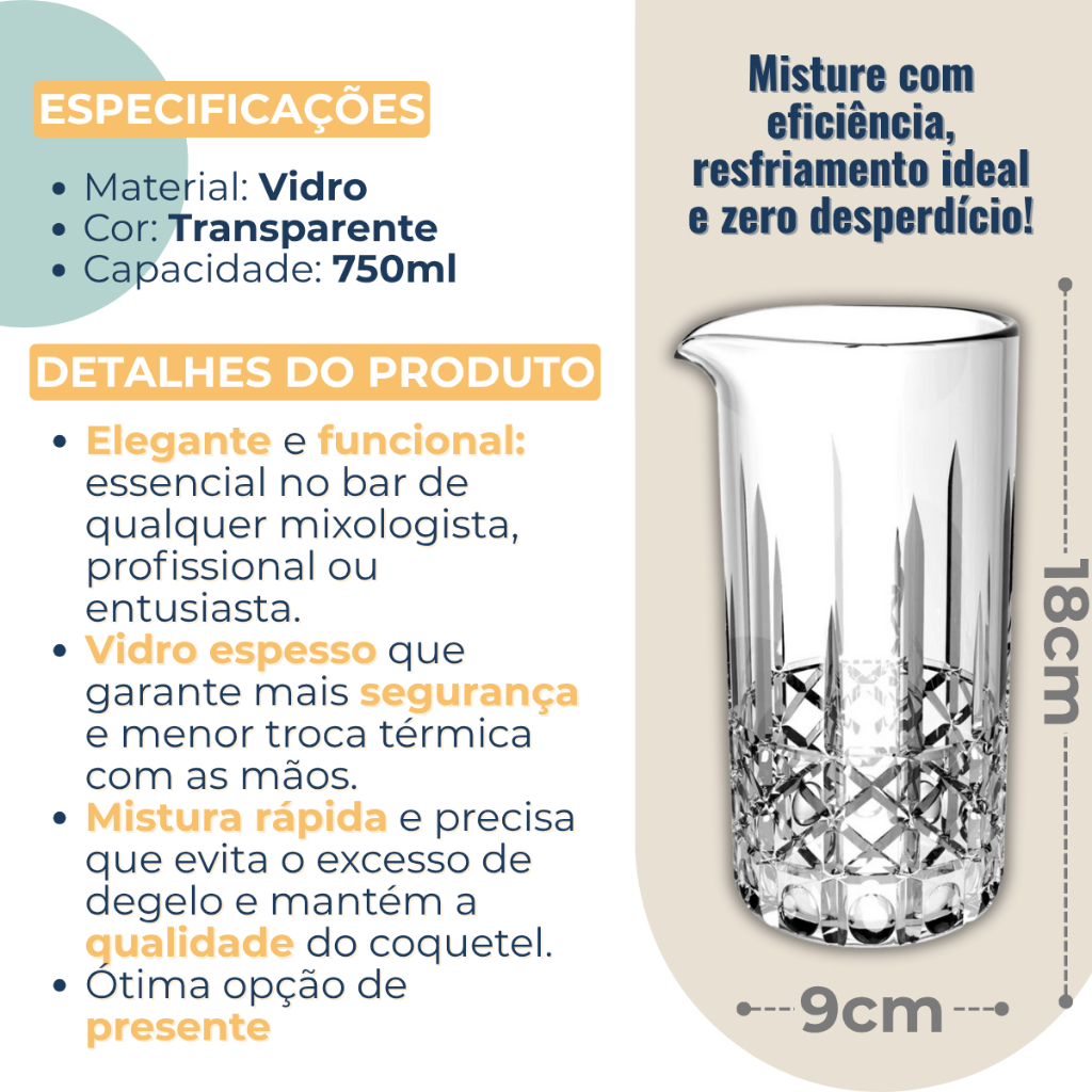 Copo Para Mixologia Em Vidro Mixing Glass Grande Drinks Misturador