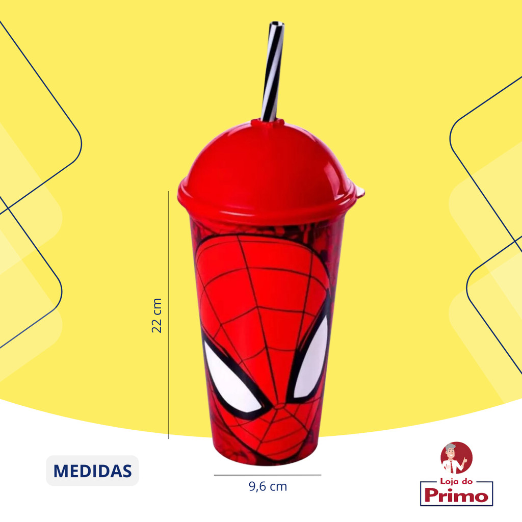 Copo Shake Homem Aranha Com Canudo 500ml Para Água e Suco Infantil Plasútil