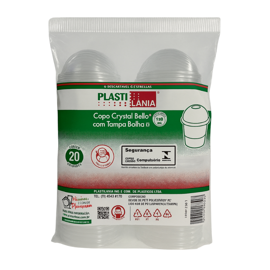 Copo Tampa Bolha Sem Furo 300/200/150ml Plastilania C/20 Und Espessura e Resistência