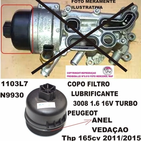 Copo Tampa do Filtro de Oleo Peugeot 206 207 307 308 408 Citroen C3 C4 1.4 8v 1.6 16v Copo Curto 1 - COPO FILTRO DE OLEO (TAMPA) SOMENTE O COPO NUMERO ORIGINAL: 1103L7 PEUGEOT E CITROEN MODELO BAIXO SEM DOIS MODELO BAIXO COM 9CM APLICAÇÃO: PEUGEOT Partner 2010/2013 1.6 16v Flex 206 2005/2010 1.4 8v Flex, 1.6 16v Flex 206 SW 2005/2008 1.6 16v Flex 207 2008/2014 1.4 8v Flex, 1.6 16v Flex 207 SW 2009/2013 1.6 16v Flex, 1.4 8v Flex 208 2012/2016 1.5 8v Flex 307 2006/2012 1.6 16v Flex, 2.0 16v Flex 308 2012/2018 1.6 16v Flex, 2.0 16v Flex 408 2011/2015 2.0 16v Flex, 1.6 16v Gasolin 2008 2015/2019 1.6 16v THP Flex 5008 2018/2019 1.6 16v Gasolin CITROEN C3 2012/2018 1.5 8v Flex C3 Picasso 2012/2015 1.6 16v Flex C4 Hatch 2009/2014 1.6 16v Flex C4 Pallas 2006/2013 1.6 16v Flex C4 Grand Picasso 2008/2018 1.6 16v Flex Xsara Picasso 2006/2012 1.6 16v Flex DS3 2012/2014 1.6 16v Flex DS4 2013/2014 1.6 16v Gasolin DS5 2013/2014 1.6 16v Gasolin Air Cross 2010/2018 1.6 16v Flex PRODUTO NOVO QUALIDADE ORIGINAL. *INFORMAÇÕES IMPORTANTES* 1 - NOSSOS PRODUTOS NÃO SÃO RECOMENDADOS PARA ADAPTAÇÕES, MAS SIM PARA REPOSIÇÃO. 2 - ANALISE COM CAUTELA A APLICAÇÃO DA PEÇA E, SE NECESSÁRIO, VERIFIQUE COM SEU MECÂNICO DE CONFIANÇA UTILIZANDO AS FOTOS DO ANÚNCIO PARA TER CERTEZA DE QUE ESTA É A PEÇA QUE VOCÊ REALMENTE PRECISA. 3 - SE ASSEGURE DE ESTAR EFETUANDO A COMPRA CORRETA PARA EVITAR EVENTUAIS PROBLEMAS E GASTOS. 4 - PRODUTOS QUE NECESSITAM INSTALAÇÃO A MESMA DEVE SER FEITA POR UM PROFISSIONAL CAPACITADO. 5 - NÃO NOS RESPONSABILIZAMOS POR USO INDEVIDO OU INSTALAÇÃO INCORRETA. 6 - NÃO ACEITAMOS DEVOLUÇÃO DO PRODUTO SEM A EMBALAGEM ORIGINAL. 7 - TODOS PRODUTOS SÃO NOVOS COM 3 MESES DE GARANTIA E NOTA FISCAL. 8 - À POSTAGEM É FEITA NO MESMO DIA PARA PEDIDOS FEITO ATÉ AS 13HS. 9 - TIRE TODAS AS DUVIDAS ANTES DE CLICAR EM COMPRAR. • AGRADECEMOS A SUA PREFERÊNCIA! N-9930