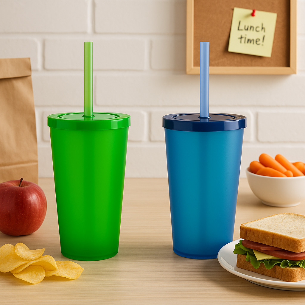 Copo Teen 400ml para FESTAS Com Tampa E Canudo Plastico Liso Kit 4 Peças VARIAS CORES