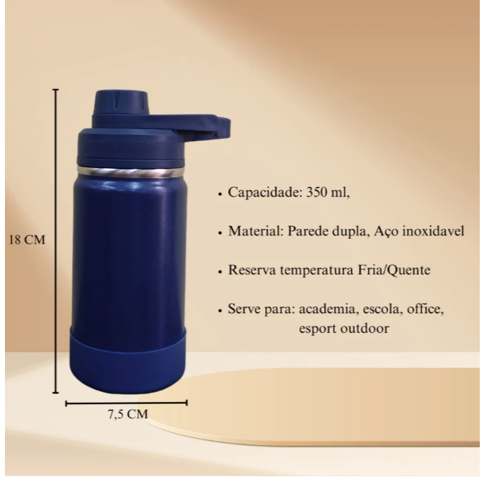 Ola seja bem vindo CARACTERÍSTICAS: Garrafa Térmica conserva líquido quente ou frio Capacidade 350ml-600ml-800ml Material aço inox de alta qualidade Pintura tinta eletrostática de alta durabilidade Tampa em rosca, plástico. Especificações: Leve e portátil para fácil uso em qualquer lugar. Proporcione proteção para sua garrafa, proporcionar sua garrafa de colisões e amassados. O silicone antiderrapante mantém sua garrafa de ser batida por acidente. ️ ATENÇÃO ️ - Tire suas dúvidas pelo chat antes de finalizar sua compra. Somos vendedores locais, todos os nossos produtos temos a pronta entrega e envio rápido.