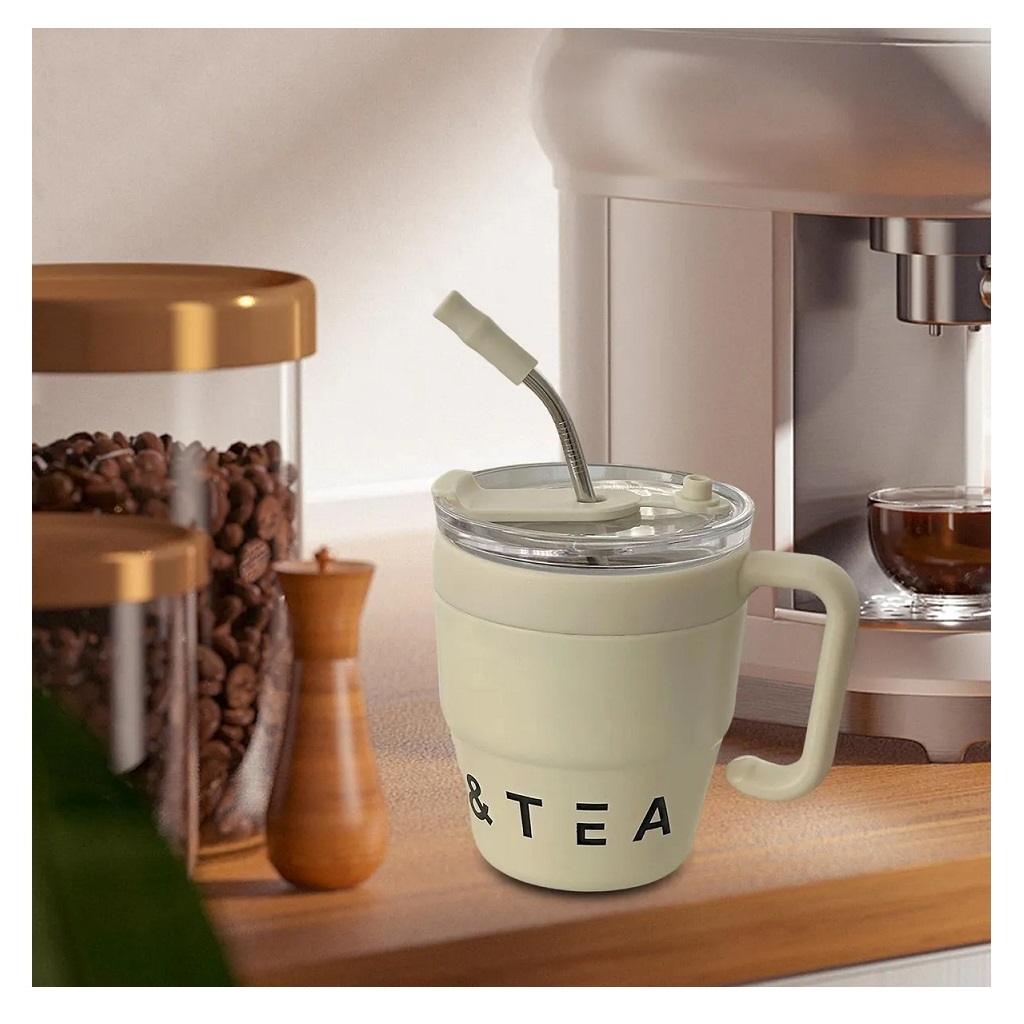 Copo Térmico Cafe Inox Portátil Com Tampa e Canudo 480ml Antivazamento