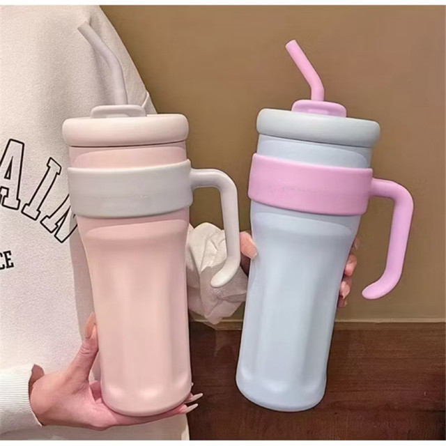 Copo térmico com Canudo de Inox 1200ml Com Alça Isolamento Térmico Academia com tampa 2 funções novo nova