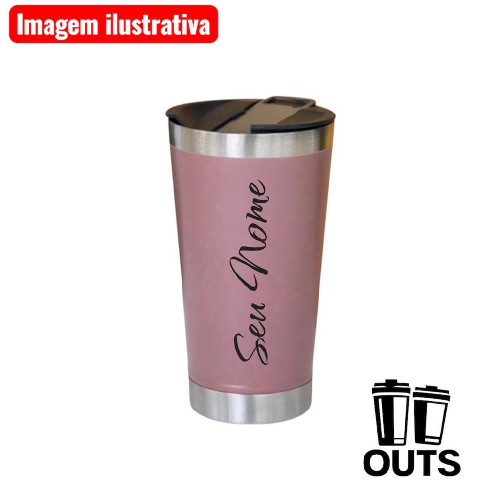 Copo Térmico Inox 473ml Personalizado com Tampa e Abridor – Gravação de Nomes
