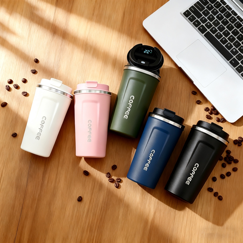 Nome do produto: Caneca Térmica de Aço Inox com Termômetro Digital 510ml - Mostra a Temperatura em Tempo Real - Mantém Frio e Quente ☕️ Termômetro Digital Inteligente: Tampa com tela HD integrada que mostra a temperatura da água em tempo real! Adeus à queimaduras na língua e café esfriado. Cada gole na temperatura perfeita. 🧊 Excelente Conservação de Temperatura: Fabricada em aço inoxidável 304 com tecnologia de vácuo, mantém bebidas quentes por 6 horas e bebidas frias por até 12 horas. Protege a sua melhor experiência de consumo. 💪 Design Resistente e Antivazamento: Corpo em aço inoxidável de alta qualidade, resistente a impactos e desgaste; vedação com anel de silicone, pode ser levada na bolsa sem medo de vazamentos. 🌱 Multiuso: Não é apenas uma caneca de café, mas também para chá, sucos, garrafa de academia, atendendo às suas necessidades de hidratação o dia todo. 📝 Especificações do Produto Material: Interior/Exterior - Aço Inoxidável Grau Alimentício 304 Capacidade: 510ml Tecnologia: Isolamento a Vácuo de Dupla Parede Tampa: Tampa de abertura manual (com tela de termômetro inteligente) Características: Mantém temperatura, portátil, display inteligente.