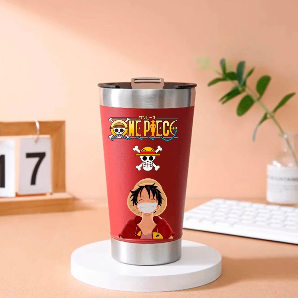 Copo térmico Luffy One Piece com tampa e abridor - Mangá - Anime 473 ml