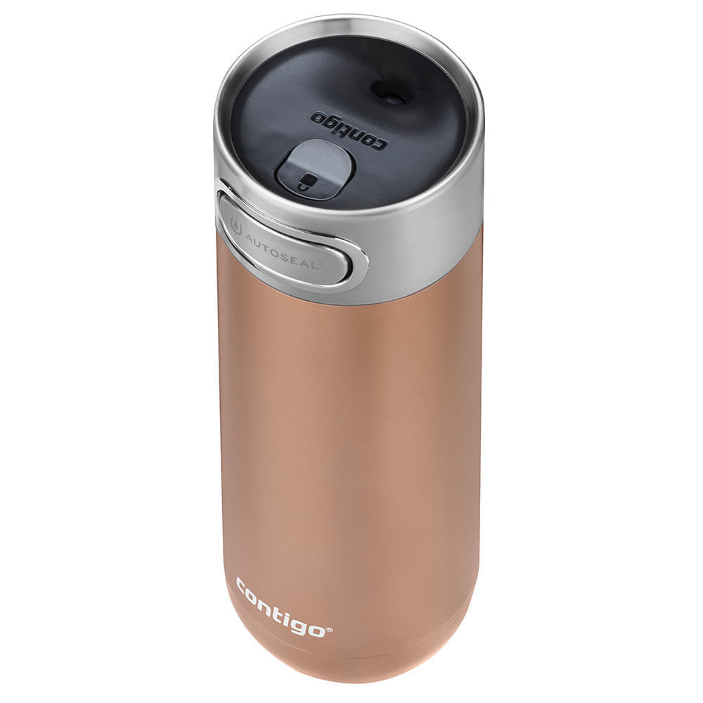 O Copo Térmico Luxe AUTOSEAL® Chardonnay Contigo tem corpo em Aço Inoxidável com Isolamento a Vácuo, combinando a conveniência de bebidas que permanecem quentes ou frias por horas com um acabamento premium. Além disso, a tecnologia AUTOSEAL® no botão de pressão da tampa veda sua garrafa quando você termina de beber, tornando o copo 100% à prova de vazamento quando em movimento. A tampa pode ser travada quando não estiver em uso para garantir que o botão não seja pressionado acidentalmente durante o transporte. O isolamento a vácuo com parede dupla em aço inoxidável THERMALOCK™ significa que as bebidas permanecem quentes por até 5 horas ou frias por até 12 horas. A parte inferior da tampa se abre para facilitar a limpeza e tanto a tampa quanto o corpo são seguros para ir na lava louças. Destaques que fazem a diferençaVedação: Copo térmico à prova de vazamentos, graças à tecnologia AUTOSEALConserva suas bebidas por longo tempo: Isolamento a vácuo com parede dupla em aço inoxidável que mantém suas bebidas quentes por até 5 horas ou frias por até 12 horasBeba com uma mão: Conveniência de beber com uma mão em movimentoTrava: A função de travamento impede a pressão acidental do botão AUTOSEALFácil de limpar: A parte inferior da tampa se abre para uma limpeza mais completaPode ir na lava louças: O corpo e tampa podem ir na prateleira superior da lava louçasEncaixe Perfeito: Serve na maioria dos porta copos dos carrosTranquilidade: Todas as partes são livres de BPA; Conserva por mais tempoBebidas quentes por até 5 horasBebidas frias por até 12 horas Garantia12 meses Capacidade473ml Conteúdo da embalagem1 Copo Térmico Luxe AUTOSEAL® Chardonnay1 Manual