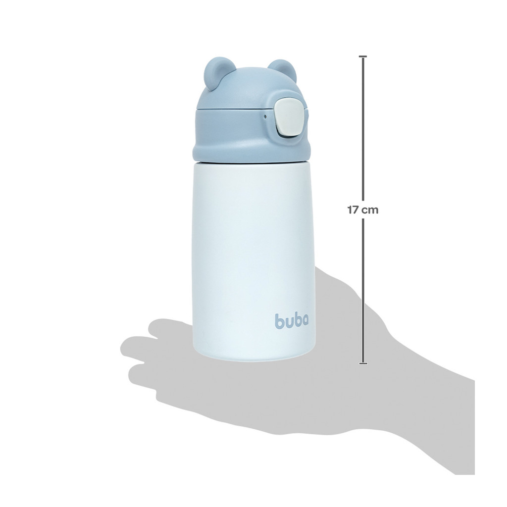 Copo Térmico Parede Dupla Buba Ursinho Azul O Copo Térmico Parede Dupla Ursinho Azul Buba é ideal para manter a temperatura das bebidas por mais tempo, garantindo praticidade e segurança para o dia a dia das crianças. Com design encantador e resistente, é perfeito para passeios, escola ou uso em casa. Características: - Capacidade de 320ml - Parede dupla que conserva a temperatura das bebidas - Tampa com vedação segura e canudo retrátil - Formato anatômico, fácil de segurar por mãos pequenas - Produzido em material livre de BPA e ftalatos - Estampa de ursinho na cor azul, com acabamento durável Indicações: Indicado para crianças em fase de transição, auxiliando no consumo independente de líquidos frios ou mornos. Modo de Uso: Preencha com a bebida desejada, feche bem a tampa e certifique-se de que o canudo esteja firme. Ideal para uso diário e em passeios. Cuidados: Lave com água e sabão neutro antes e após o uso. Não utilize em micro-ondas nem em lava louças. Evite líquidos muito quentes para preservar o material.