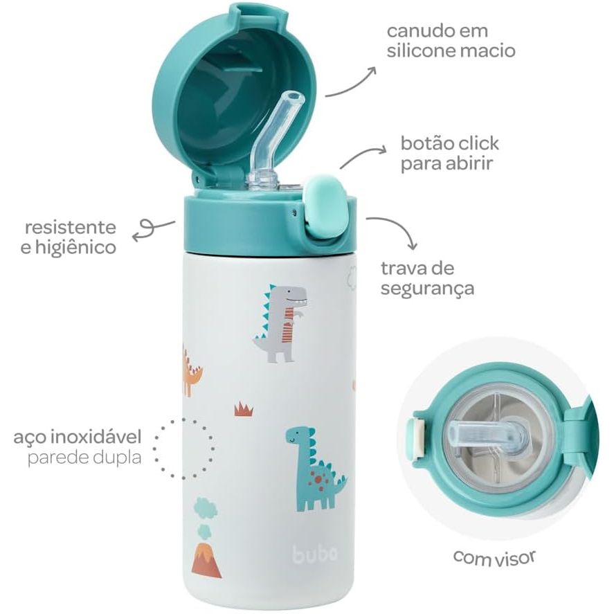 Copo Térmico Parede Dupla Magic Torne os passeios com os pequenos mais divertidos e seguros! Com um design lúdico e funcional, o Copo Térmico Magic da Buba mantém líquidos quentes ou frios por mais de 5 horas. Parede dupla em aço inoxidável resistente e higiênico Abertura com botão tipo click prático para crianças Trava de segurança evita vazamentos Visor transparente veja o conteúdo com facilidade Canudo de silicone macio, atóxico e livre de BPA Base antiderrapante para maior estabilidade