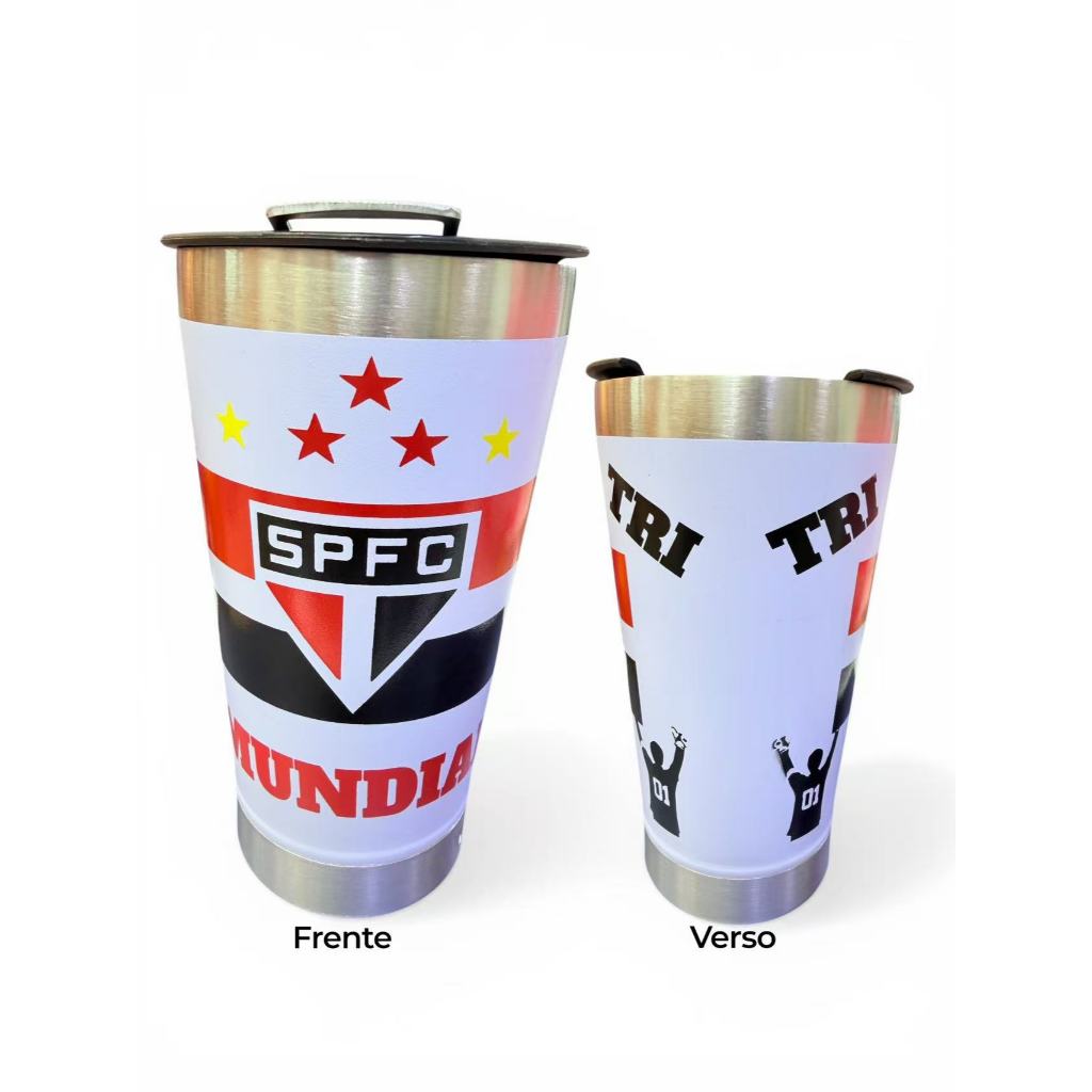 Copo Térmico São Paulo Personalizado Tampa e Abridor 473ML Especificações Técnicas: - Fabricado com material de alta qualidade, o copo possui isolamento térmico avançado para manter suas bebidas na temperatura desejada por horas. - Seu design elegante e durável é ideal para uso em casa, no trabalho ou em aventuras ao ar livre. - Com capacidade generosa de 1200ml, você tem espaço suficiente para saciar sua sede a qualquer momento. - Tipo de personalização: DTF UV (alto-relevo, colorido e resistente) - DTF UV é adesivo de alta duracao que pode ser lavado e aguenta temperaturas quentes / fria - Não personalizamos com NOME. Características Adicionais: - Construído em aço inoxidável com isolamento a vácuo de parede dupla para máxima eficiência térmica. - Conservação de bebidas quentes por até 2 horas e bebidas geladas por até 5 horas. - Abridor de garrafa acoplado. - Peso: aproximadamente 0,330kg - Comprimento: 9,60cm - Largura: 9,60cm - Altura: 17,21cm - Tipo: Com tampa e abridor - Tampa contra derramamento e sujeiras. - 118ml extra para colarinho. - Parede dupla com isolamento a vácuo. - Não Transpira por fora.