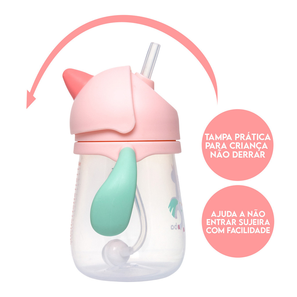 Copo Transição Unicórnio Alça Canudo Antivazamento 19708 - Buba