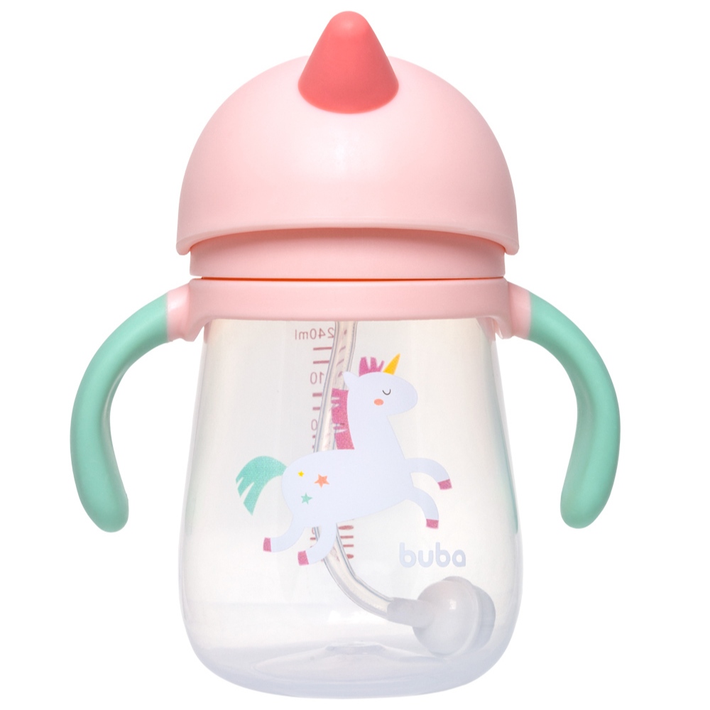 Copo Treinamento com Alça e Canudo 240ml em Silicone Magic 6m+ Buba