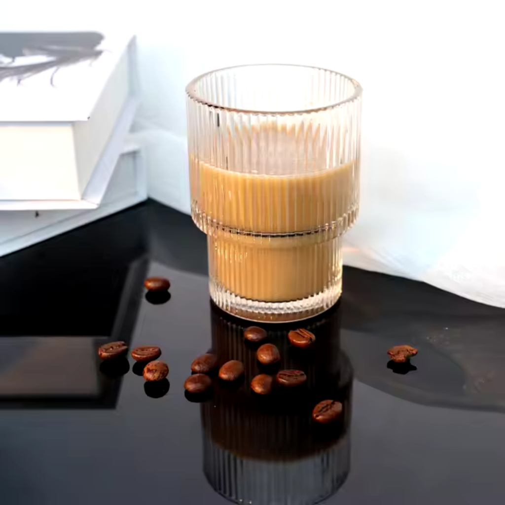 Copo Xícara de Vidro Vintage 330ml Listrado Vertical Transparente Empilhável Café Chá Água Suco Cerveja