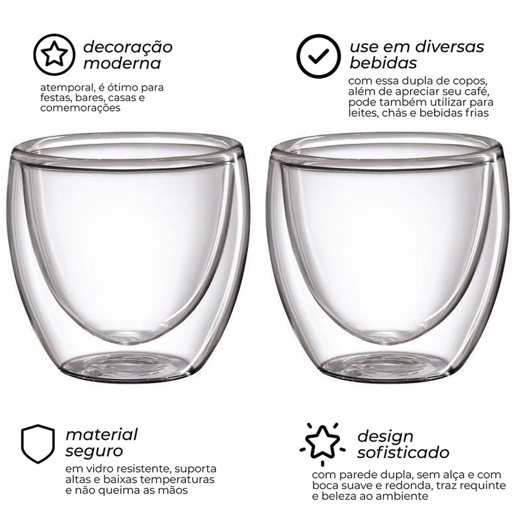 Copos De Vidro Borossilicato Parede Dupla 80ml 2 Unidades