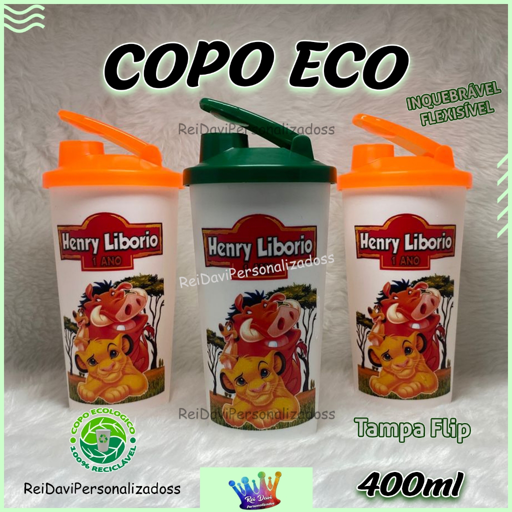 Copos ECOLÓGICOS 400ml Com Tampa FLIP - PERSONALIZADOS (qualquer tema)