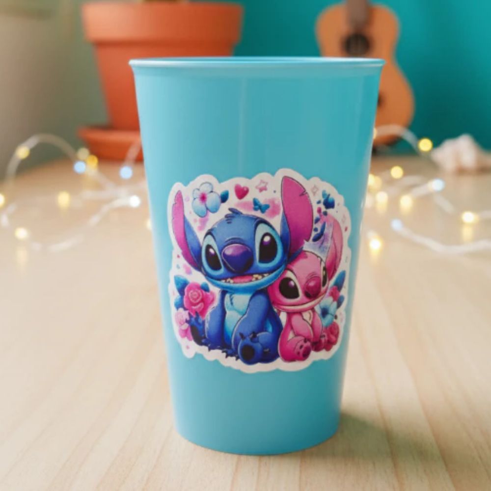Copos Stitch Angel Adesivados de Plástico 380ml Resistentes Para Criança Festa Lembrancinha presente