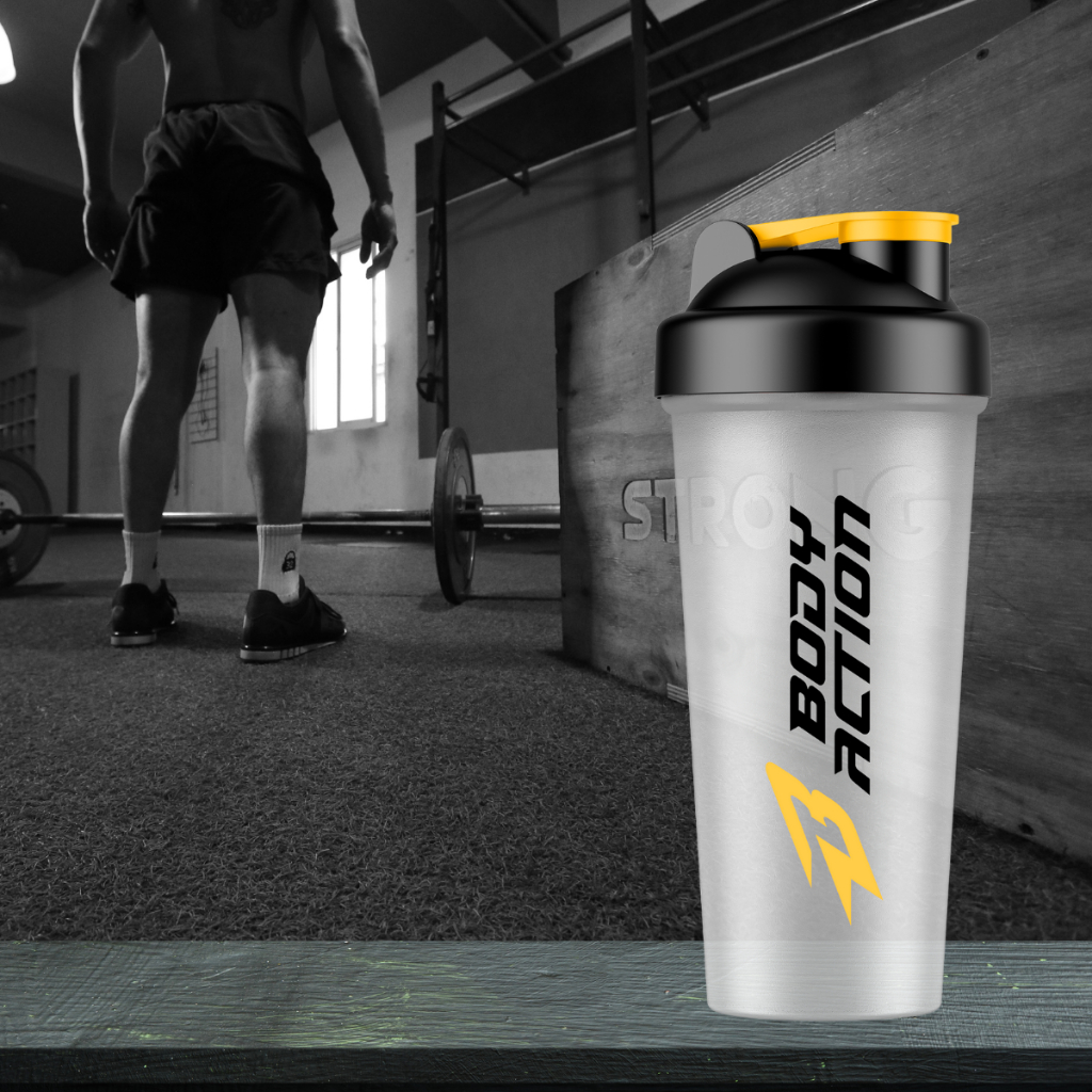 Coqueteleira Bodyaction 600ml - Design Moderno e Funcional Leve sua suplementação para outro nível com a Coqueteleira Bodyaction de 600ml! Ideal para quem busca praticidade, qualidade e estilo, ela é perfeita para o preparo de shakes, sucos e suplementos. Características: Capacidade de 600ml: Ideal para porções completas de suas bebidas preferidas. Design moderno: Transparente com detalhes em preto e amarelo que refletem energia e dinamismo. Vedação segura: Tampa com rosca e trava flip-top, evitando vazamentos. Material resistente: Produzida com plástico de alta qualidade, livre de BPA. Praticidade no preparo: Contém misturador interno para um shake sempre homogêneo. Benefícios: Compacta e fácil de transportar para a academia, trabalho ou viagens. Fácil de limpar e reutilizar. Um acessório indispensável para quem leva a saúde e o esporte a sério. Garanta já a sua e leve mais performance para o seu dia a dia com a qualidade Bodyaction!
