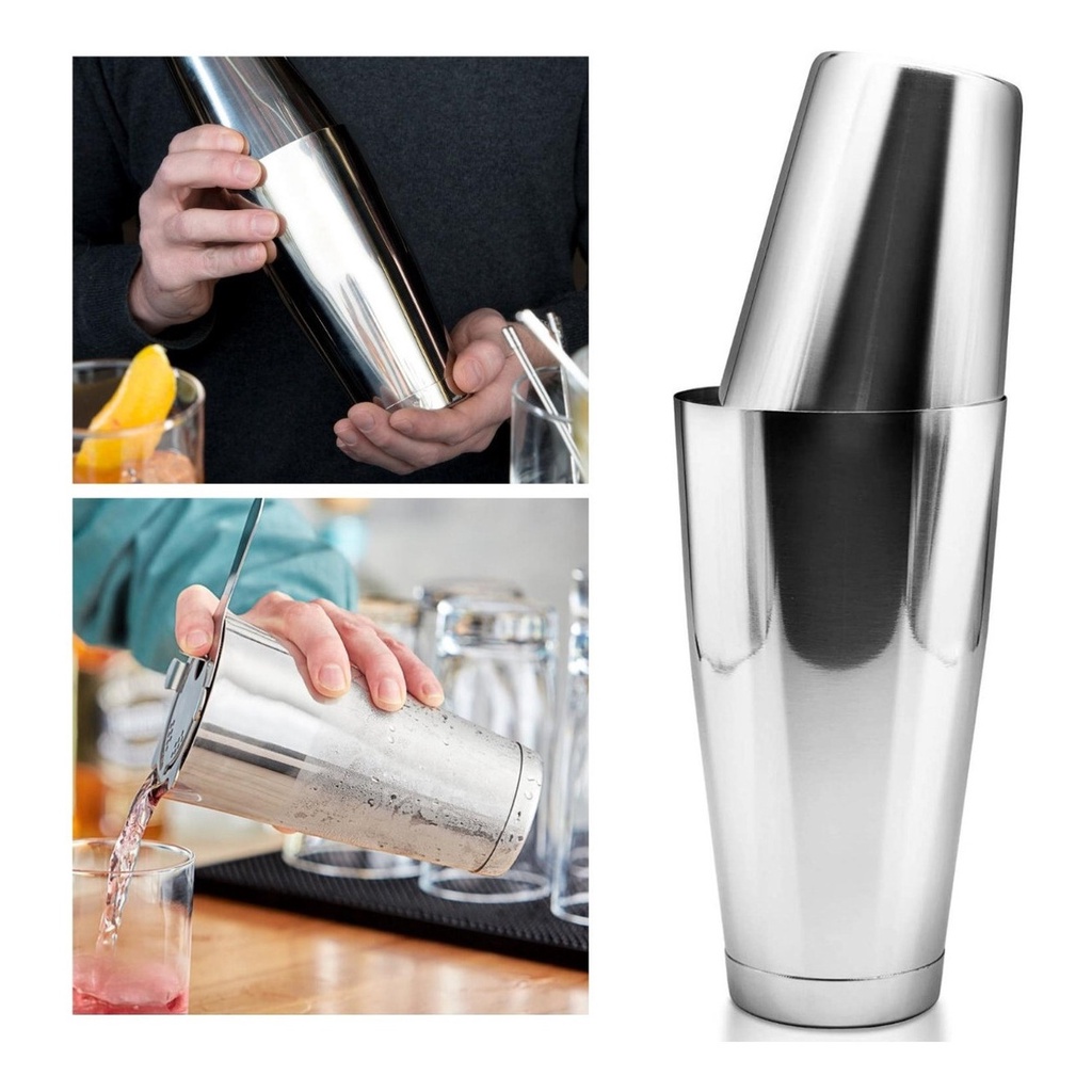 - Produto à Pronta Entrega - Envio imediato - Fotos reais do produto Coqueteleira Boston 820 ml em Aço inox profissional A coqueteleira possui 2 partes, sendo 1 copo maior com sua base pesada para facilitar o manuseio e estabilidade e 1 copo menor que é sobreposto ao outro para fechar a coqueteleira. Possui vedação perfeita por pressão, o que evita vazamentos durante a mistura dos ingredientes. *Possui a base do copo maior com peso, para melhor estabilidade* *Ficha técnica: Tamanho total: 26,6 x 9,2 cm Tamanho copo maior: 17,2 cm Capacidade: 750 ml Tamanho copo menor: 13,9 cm Capacidade: 500 ml ITENS INCLUSOS: 1 COQUETELEIRA BOSTON Material: Aço inox